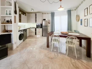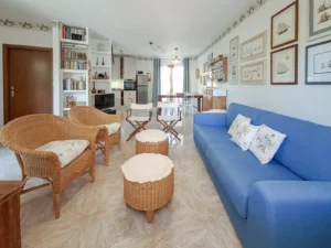 Al piano terra (ma isolato dalla strada dal giardino e dal terrazzino) di un residence situato in via Ammiraglio Spano, l’appartamento di circa 55 mq, è dotato di tutti i comfort. È composto da camera matrimoniale, bagno interamente rifatto nel 2023 ed un unico locale di oltre 30 mq suddiviso in cucina e soggiorno con divano letto extra (larghezza materasso 160).